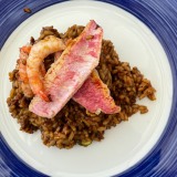 A friend had recommended Sea Club’s rice dishes – of which there are three, each for a minimum of two people (27€–32€ per person). We chose the one with Mallorcan red prawns, red mullet, and courgettes, which was superb and a good recommendation.