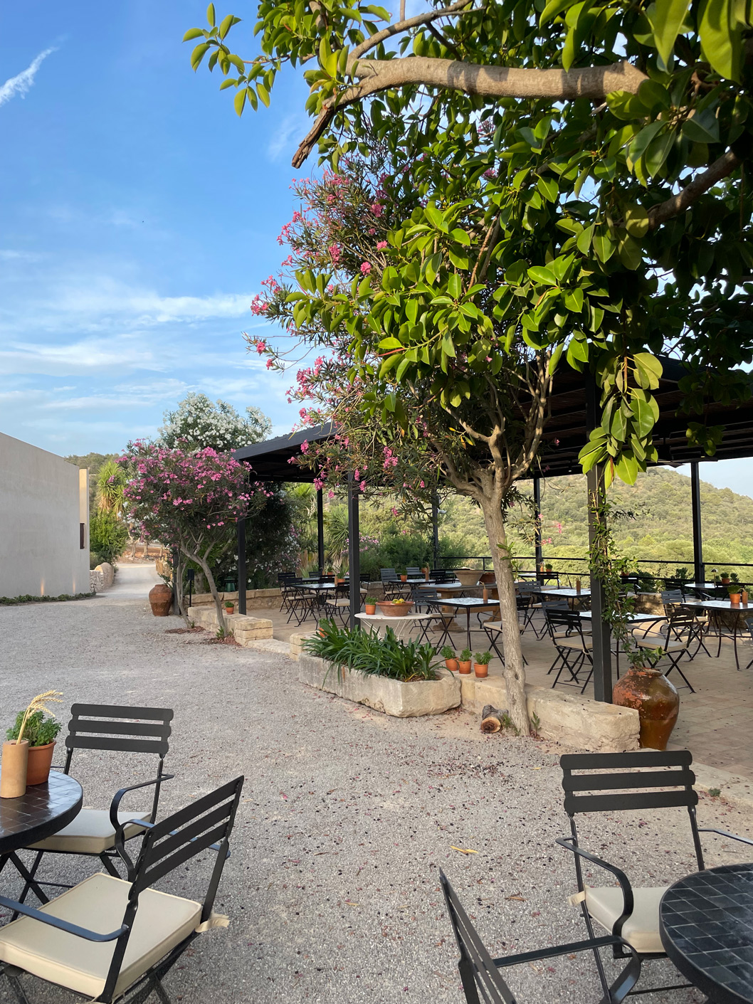 Expert cooking with fire achieves high levels of deliciousness here, where the estate provides wood from its numerous almond, olive, carob, and Holm oak trees – each adding subtle nuances to the cuisine.