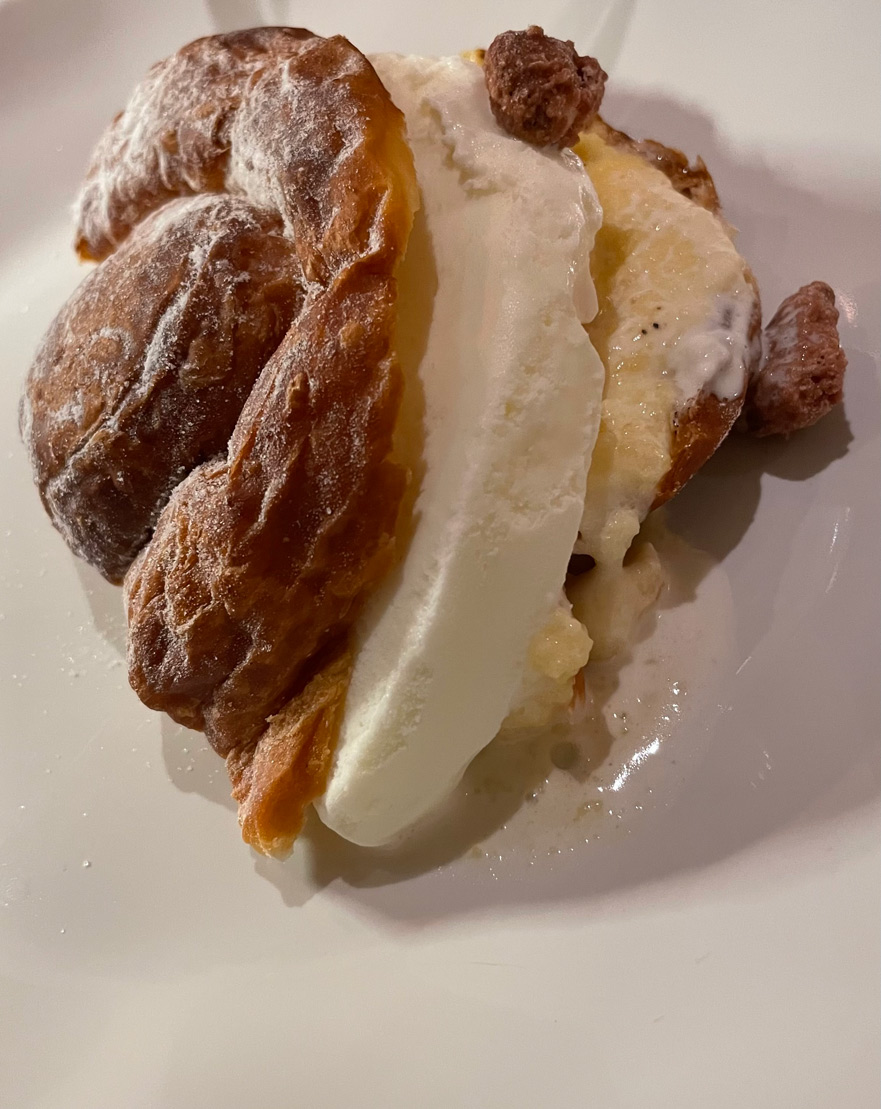 The tasting menu begins with an impressive ‘gilda mallorquina’ – sobrasada, pepper, anchovy, figs, and olive skewered onto a twig. A ‘coca’ of sardines with rosemary ‘tumbet’ follows. Other treats include the famed red prawn from Sóller, line-caught squid, rice from Sa Pobla, suckling pig (with delicious crackling) and vegetables from the finca, as well as a truly indulgent, ensaÏmada dessert.