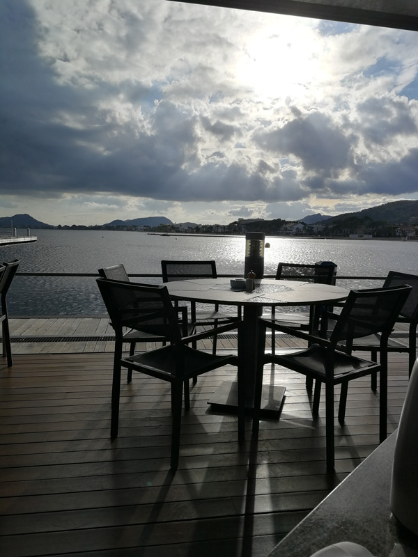 The terrace tables are in demand year-round, with the benefit of awnings and overhead heaters for the cooler days of autumn and winter. The views from the terrace include the mountains beyond the resort and extend around the Bay of Pollença. On a calm autumn or winter day, it’s an idyllic place to enjoy something to eat or just a drink.