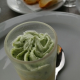 We began with the complimentary appetizer, a shot glass of silky pumpkin soup topped with a coconut foam. It was accompanied by a bread roll and extra virgin olive oil.