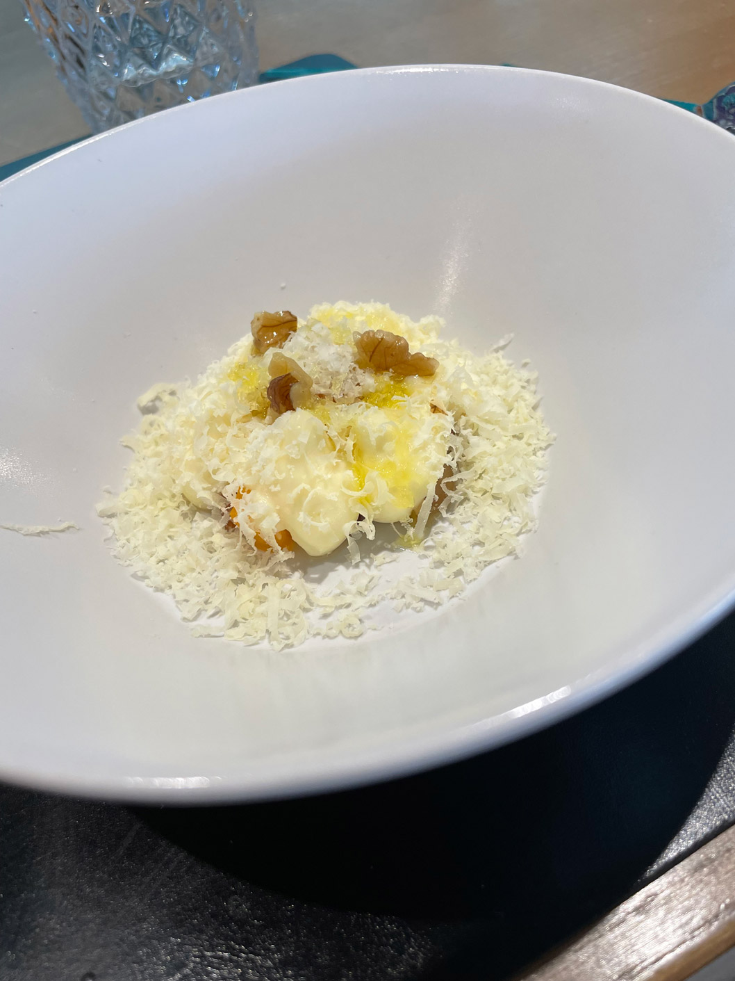 Our final savoury plate was Tomeu’s signature Cannelloni 2001 filled with pork and duck and accompanied by a mushroom sauce. Two desserts followed – the first of which was the perfect bridge between savoury and sweet.