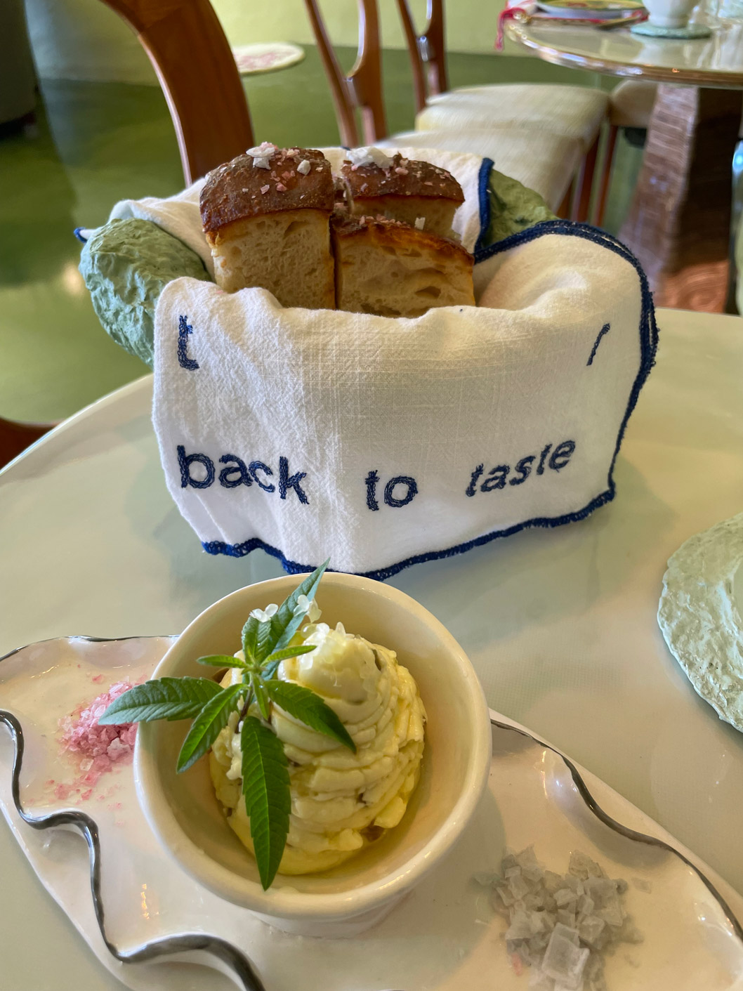Four pieces of tasty home-made focaccia bread arrived in a ceramic ‘basket’ alongside butter whipped with citric and jalapeño, served with two types of salt.