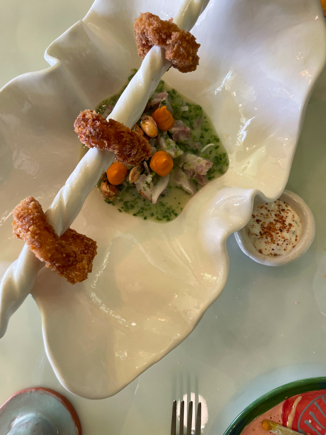 In terms of food, Central and South American influences are on the menu, with dishes designed to be shared. I love that the menu names the artisan who produced the tableware on which each dish is served. Helpfully, a cocktail pairing is suggested for each dish.